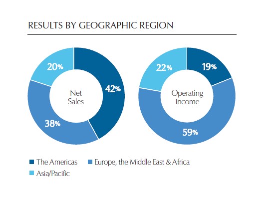 En el reporte explicó que el grueso de sus ventas estuvo asentado en la región de «Las Américas«, que le generó el 38% de las ventas netas. Desde Europa, África y Asia Occidental le llegaron el 42% de sus ingresos y desde Asia Pacífico el 20%.