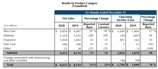 La norteamericana Estée Lauder, que a diferencia de la mayoría de las multis cierra su año fiscal el 30 de junio, publicó sus estados financieros correspondientes al primer semestre de su ejercicio económico 20/21.