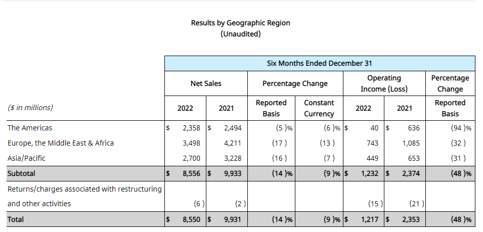 De acuerdo con el documento, la firma reportó ventas globales por u$s 8.550 millones en moneda constante. Esto representa un derrumbe en los ingresos del -14%. Todas las unidades, excepto la de Hair Care, registraron cifras en rojo. Ver Press Release
