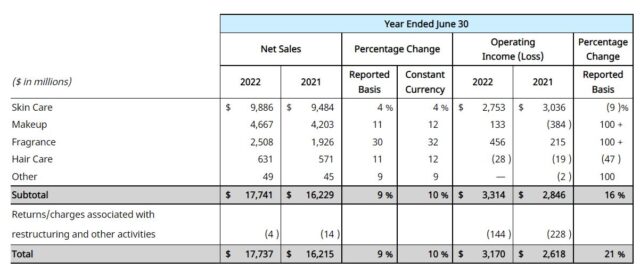 La norteamericana Estée Lauder, que a diferencia de la mayoría de las multis cierra su año fiscal el 30 de junio, publicó sus resultados financieros correspondientes a su ejercicio económico 21/22.