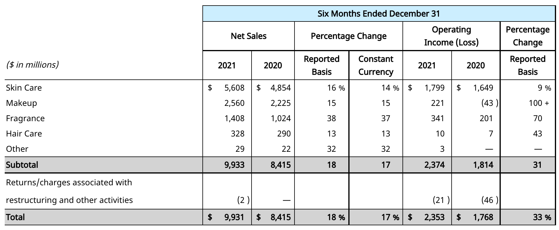 La división que se destacó con la mejor performance fue la de Fragancias -la que cuenta con etiquetas como DKNY, Michael Kors y Aerin– con una suba del 37%. La cartera anotó ventas por u$s 1.408 millones, una cifra incluso superior a los u$s 1.403 millones del 2019, pre pandemia. Según se indicó en el comunicado, «las ventas netas crecieron en todas las regiones y en prácticamente todas las marcas, impulsadas por la resiliencia continua en las fragancias de lujo, la apertura de tiendas físicas y la recuperación de los viajes en los mercados occidentales«.