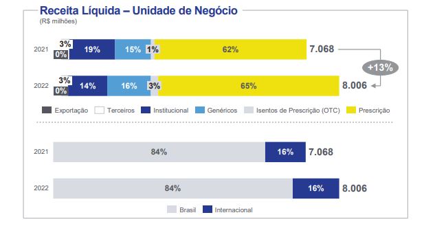El crecimiento fue impulsado por el desempeño de las unidades de prescripción, de genéricos y OTC y el mayor volumen de las ventas de las operaciones fuera de Brasil, incluidas las de Medmetriks en EEUU, que fue adquirida en octubre de 2022, explicó la brasileña.