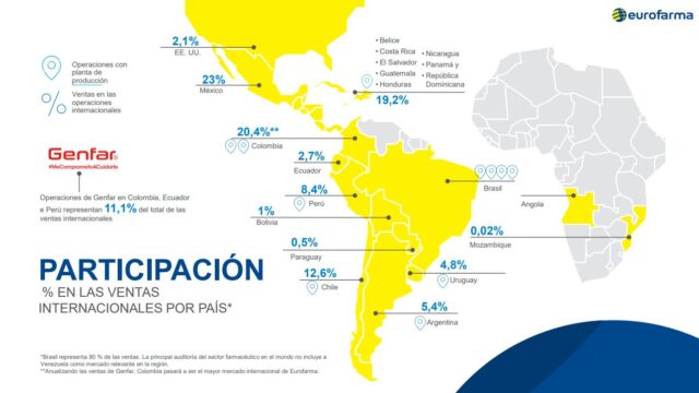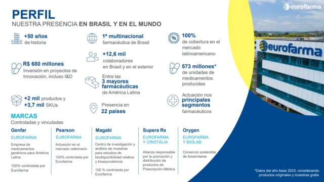 Durante el encuentro, Eurofarma presentó su programa denominado Visión 2027, que detalla su hoja de ruta para el próximo cuadrienio en el que uno de sus ejes continúa siendo el proceso de internacionalización. «Para el período 2024-6, tenemos en ejecución un sólido plan de expansión de Genfar -su controlada especializada en medicamentos genéricos– en Chile, Paraguay, Uruguay, Bolivia, Venezuela y México«, explicó Pantoja. Ver presentación