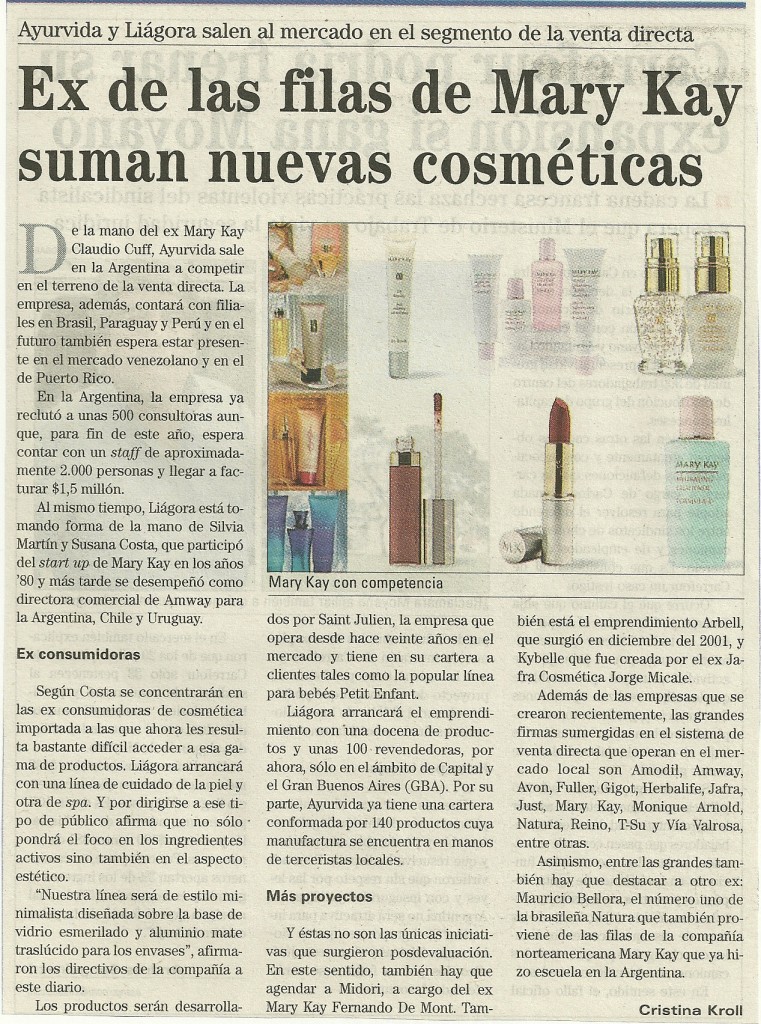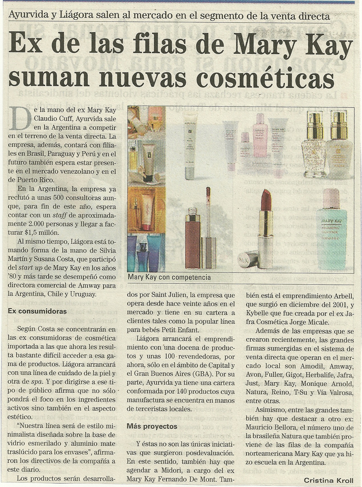 De la mano del ex Mary Kay Claudio Cuff, Ayurvida sale en el terreno de la venta directa. La empresa, además, contará con filiales en Brasil, Paraguay y Perú y en el futuro también espera estar presente en el mercado venezolano y en el de Puerto Rico.
