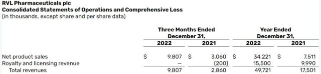 Las ventas de la biofarmacéutica irlandesa RVL Pharmaceuticals -conocida en el pasado como Osmotica-, que tiene a la familia Sielecki entre sus accionistas, subieron un 184% durante su año fiscal 2022 a 49,7 u$s millones. Ver Press Release.