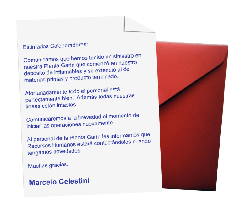 En el mismo, Marcelo Celestini, quien comanda la compañía en la Argentina, detalló que el siniestro comenzó en el depósito de inflamables y se extendió al de materias primas y producto terminado.