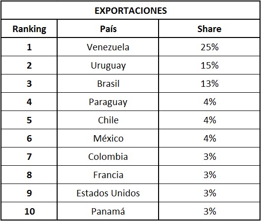 Por fuera de LATAM se destacan como destinos exportadores Francia y Estados Unidos, que devuelven el 3% de las ventas.