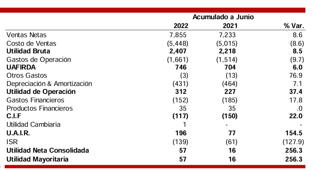 La mexicana Farmacias Benavides reportó a la Bolsa Mexicana de Valores sus resultados financieros correspondientes al cierre del primer semestre del año 2022. En este periodo, sus ventas totalizaron 7.855 millones de pesos mexicanos (u$s 383,4 millones), que medido en términos de tiendas comparables representa un incremento del 8,6% contra el mismo lapso del año pasado. Ver Comunicado.