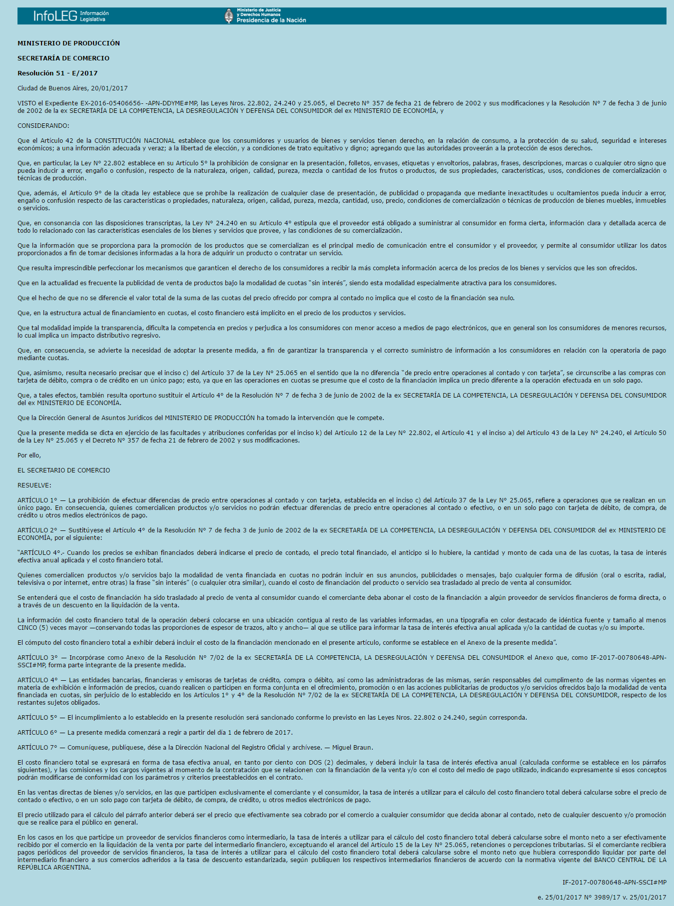 La Secretaría de Comercio, encabezada por Miguel Braun, puso en vigencia la resolución 51-E que obliga a los comercios minoristas a exhibir sus precios diferenciándolos de acuerdo a los tipos de pagos.