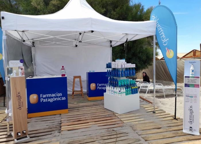 La cadena se instaló en el parador Coral, en Puerto Madryn, en la provincia de Chubut. Todos los días, en la franja de la tarde, activa una especie de mini punto de venta especializado en protección solar stockeado con la línea solar de los nacionales de Andrómaco.