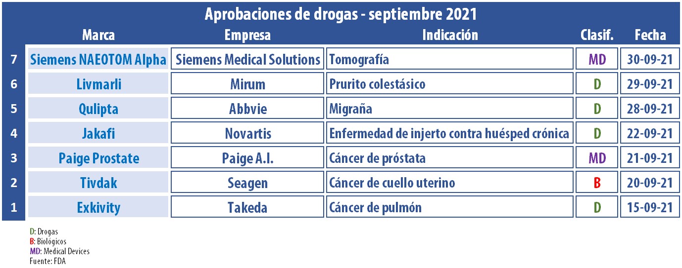 La FDA no detiene su ritmo de aprobaciones extra COVID-19. En el mes de septiembre la agencia norteamericana otorgó una variada gama de avales. El primero en recibir el visto bueno fue Exkivity, de la japonesa Takeda, un producto a base de mobocertinib para el tratamiento de adultos con cáncer de pulmón de células no pequeñas, localmente avanzado o metastásico, con ciertas mutaciones genéticas. En simultáneo también le dio el OK a un test de Thermo Fisher para identificar a las personas que pueden recibir la terapia. Ver «FDA aprobó Exkivity a Takeda».