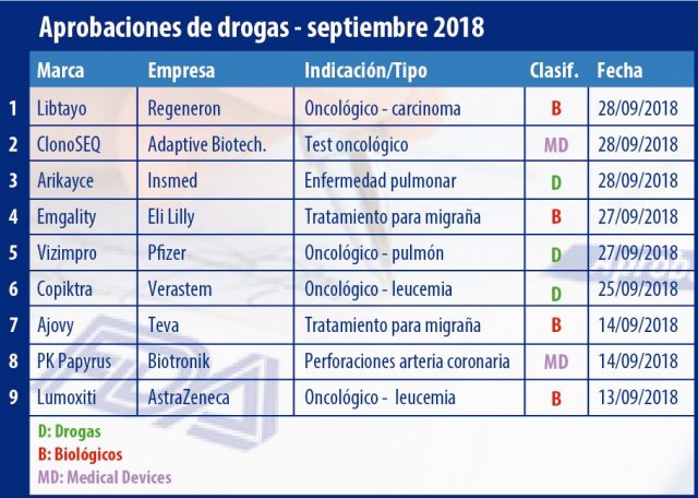 Pharmabiz realizó un relevamiento de las nuevas moléculas más destacadas que la FDA aprobó durante el mes de septiembre. Ver infografía.