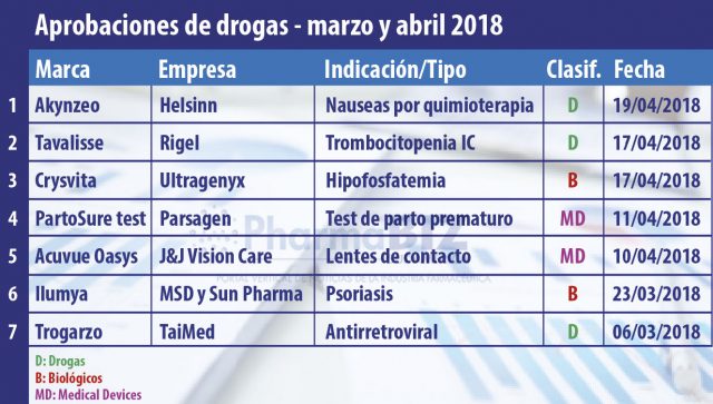A su vez, los tratamientos para el HIV están tomando la delantera durante este 2018 en la FDA. A principios de marzo la agencia regulatoria aprobó Trogarzo, un antirretroviral de administración vía intravenosa que lleva el sello de la norteamericana TaiMed Biologics. Ver artículo.