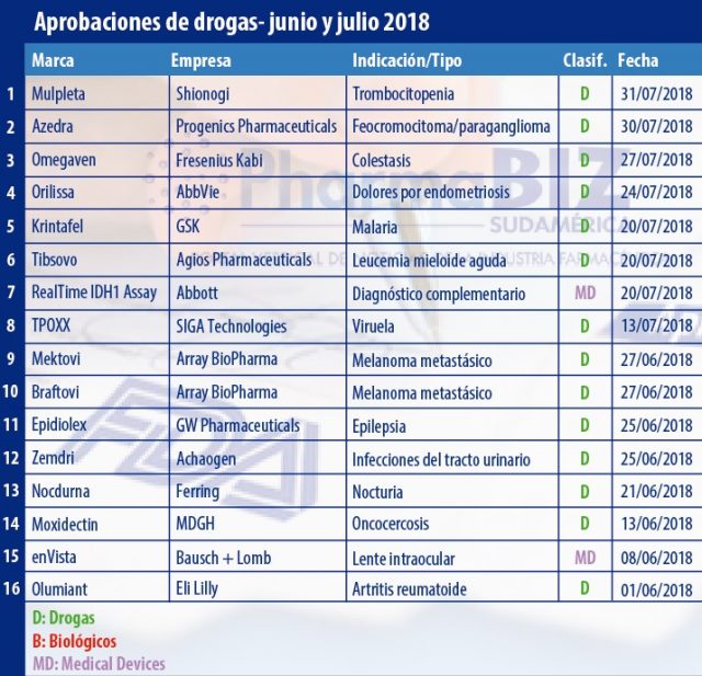 Pharmabiz realizó un análisis de las aprobaciones otorgadas por la FDA durante junio y julio.
