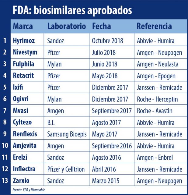 Así al día de hoy la FDA alcanza un total de 13 biosimilares avalados. Mientras que en Europa la EMA lleva la delantera con más de 40 aprobados.