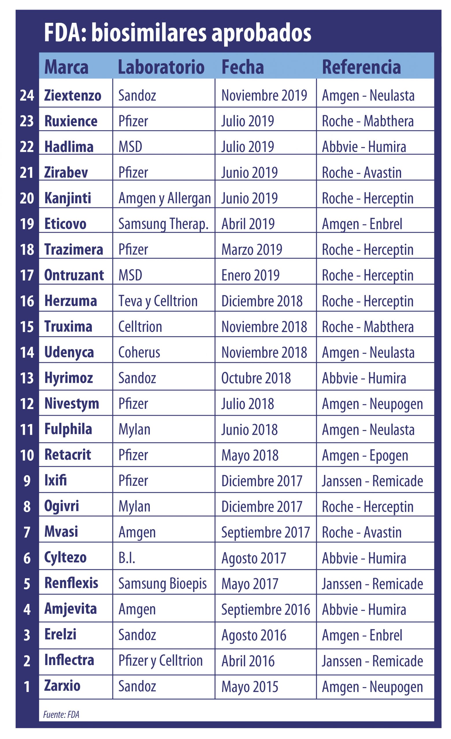 Los biosimilares están en la agenda regulatoria a nivel global. Ahora la FDA le levantó el pulgar a un nuevo producto de este tipo y ya suma un total de 24 aprobados. Ver infografía.