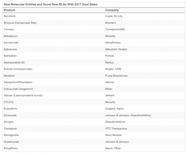 De acuerdo a BioPharmCatalyst, a pesar de que la FDA comenzó el año con un rápido ritmo de aprobaciones, el organismo tiene poco más de 20 solicitudes restantes con fechas de revisión para el 2017. De modo que es poco probable que apruebe más de 30 nuevas drogas, un número ligeramente superior al promedio anual. Ver sitio.