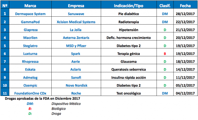 Pharmabiz realizó un relevamiento de las moléculas que la FDA aprobó durante diciembre. En el último mes del 2017 lo que resaltó sin dudas fueron los tratamientos para la diabetes, que llevaron la delantera.