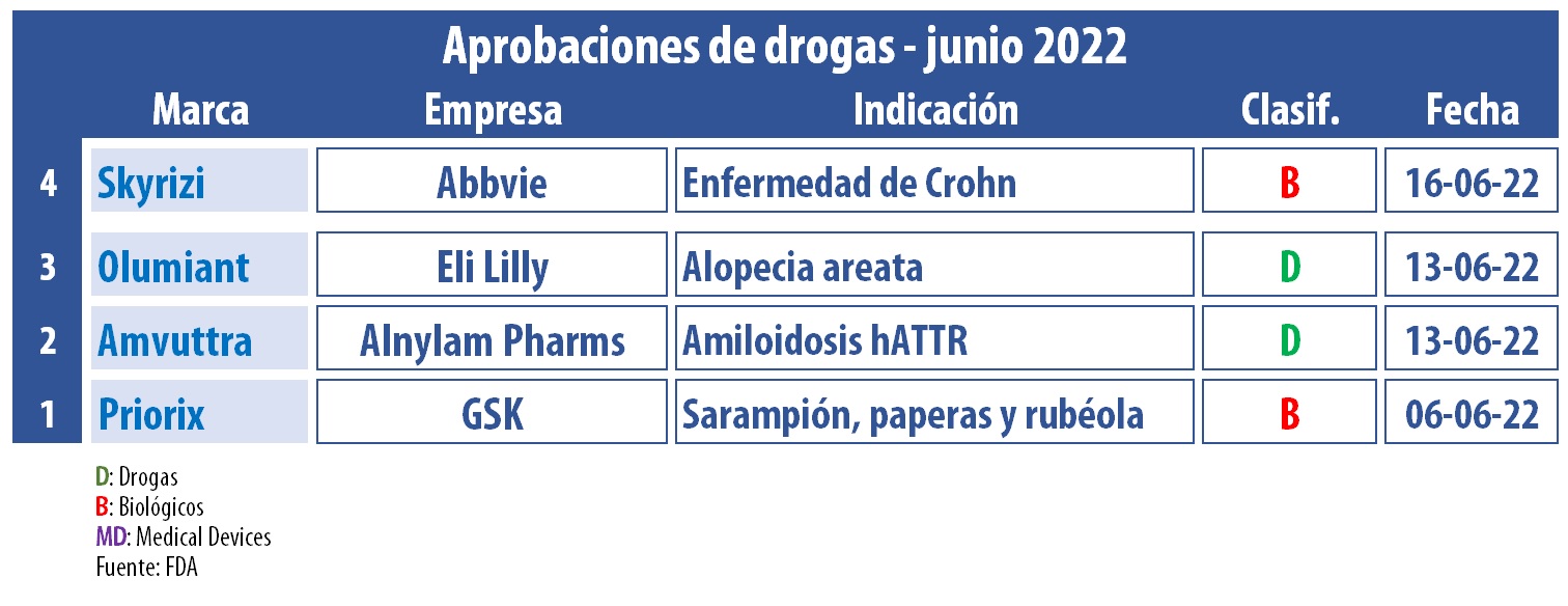 En el sexto mes del año, la FDA le dio el OK a cuatro nuevos tratamientos. Así cierra el primer semestre con un total de 23 productos avalados, entre los que se listan biológicos, drogas y devices.