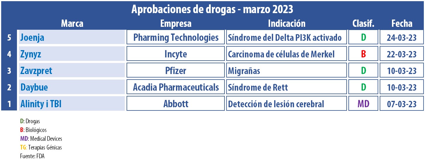 En marzo, y como cada mes, desde Pharmabiz, se pasa revista al panel de aprobaciones de la FDA. En este nuevo informe, surgen novedades relevantes y para un amplio espectro de indicaciones.
