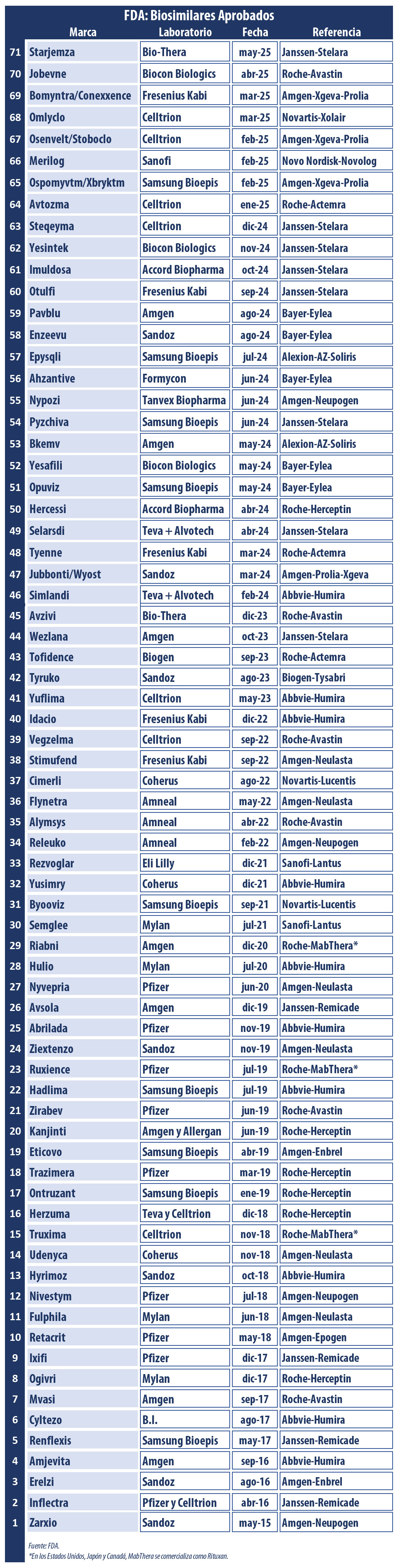 En junio del 2024 le había llegado el aval a Pyzchiva de la surcoreana Samsung Bioepis, Selarsdi de Teva+Alvotech fue aprobado en abril de ese mismo año y Weslana de la norteamericana Amgen en octubre de 2023.