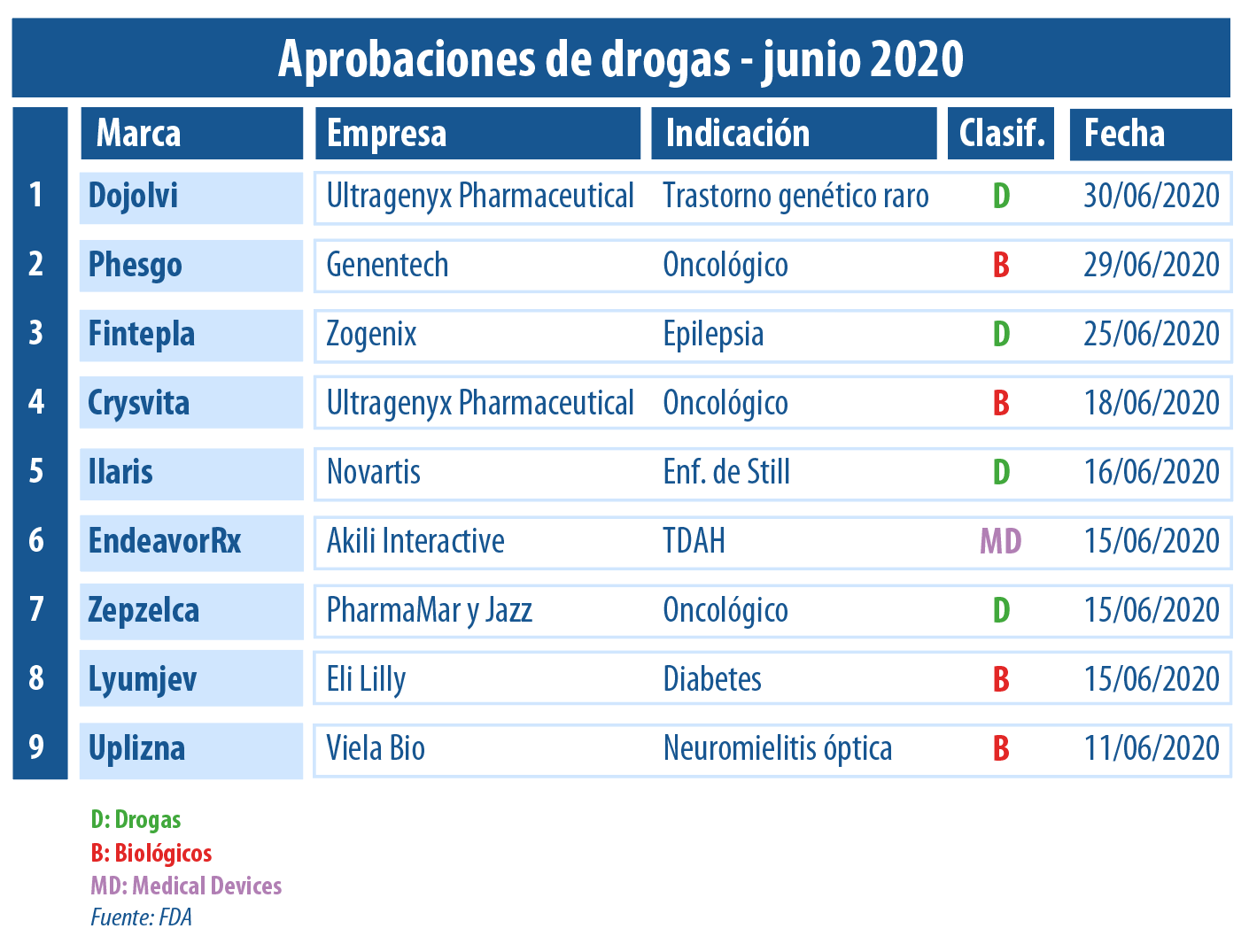 En el último tramo del mes, también logró el sí Fintepla, del norteamericano Zogenix, para las convulsiones asociadas con el síndrome de Dravet, una forma rara y crónica de epilepsia. El medicamento estará disponible en el mercado de Estados Unidos a partir de finales de julio. Ver artículo.