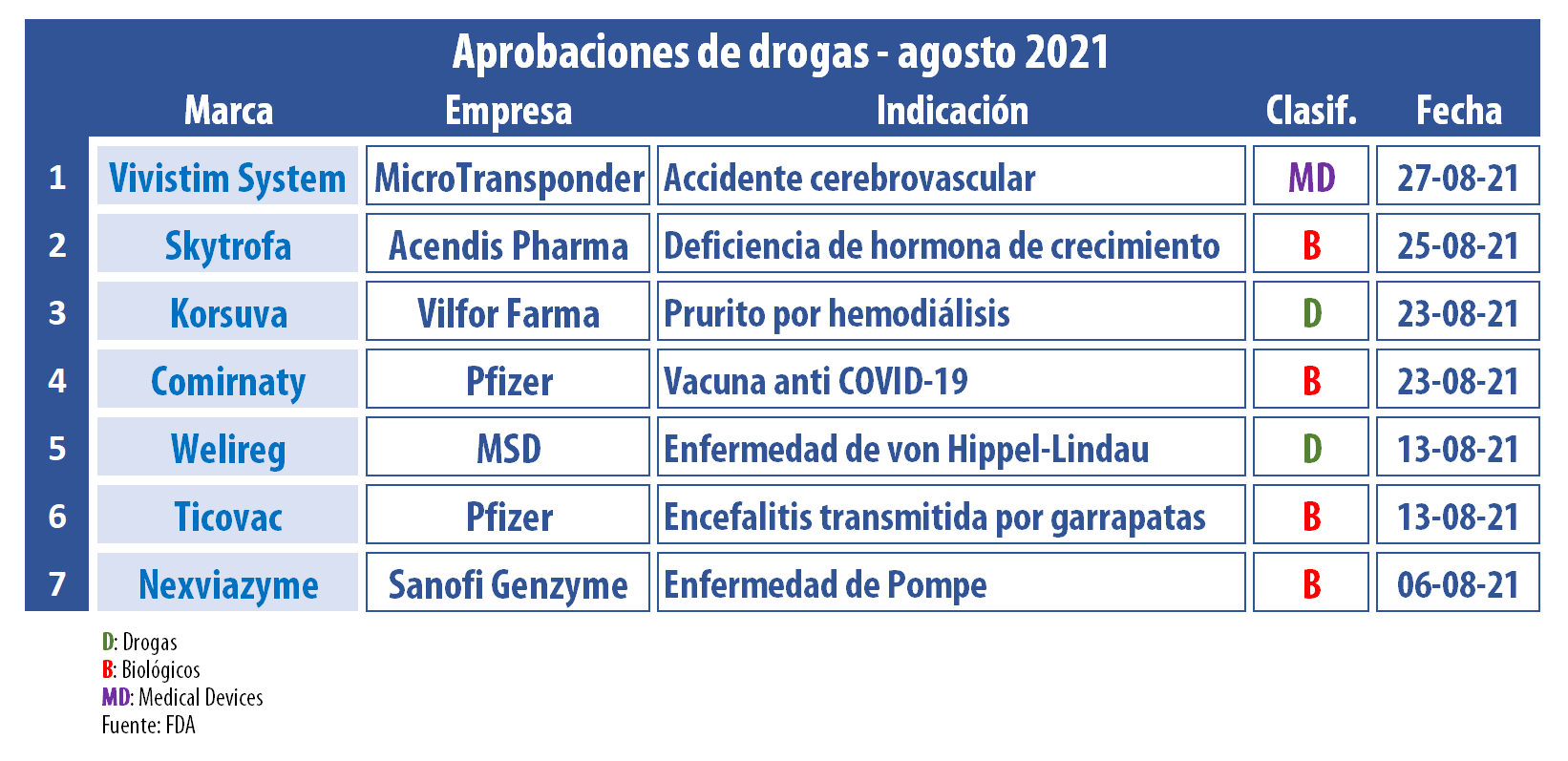 En el octavo mes del año sobresalen una dupla de aprobaciones de vacunas por parte de la FDA. Además, el organismo le levantó el pulgar a otros cinco productos que cubren una amplia gama de indicaciones.