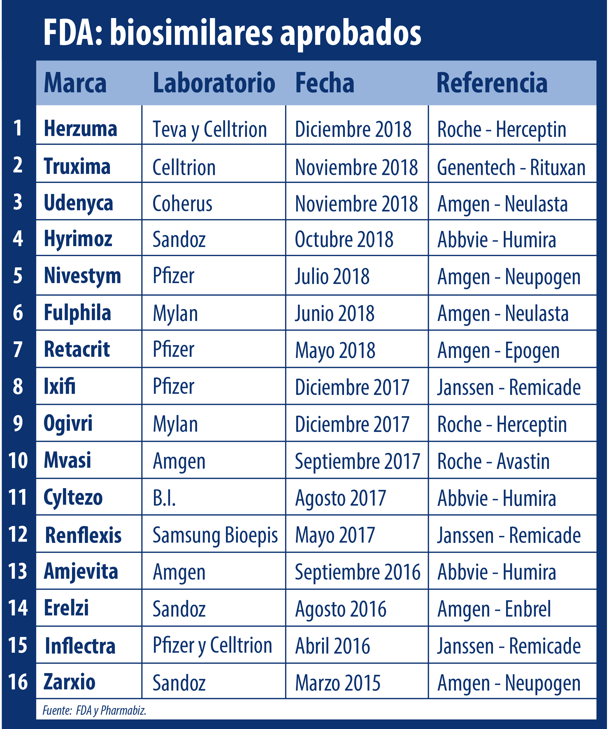 En Europa, sin embargo, son cuatro los biosimilares de Herceptin avalados por la EMA. El primer aprobado fue Ontruzant de Samsung Bioepis, el 15 de noviembre de 2017. En segundo lugar fue avalado Herzuma, en febrero de 2018. En tanto, el tercer biosimilar de este grupo fue Kanjinti de Amgen, autorizado en mayo de este año; y por último Trazimera de Pfizer, que obtuvo el OK en julio pasado. Ver Listado.