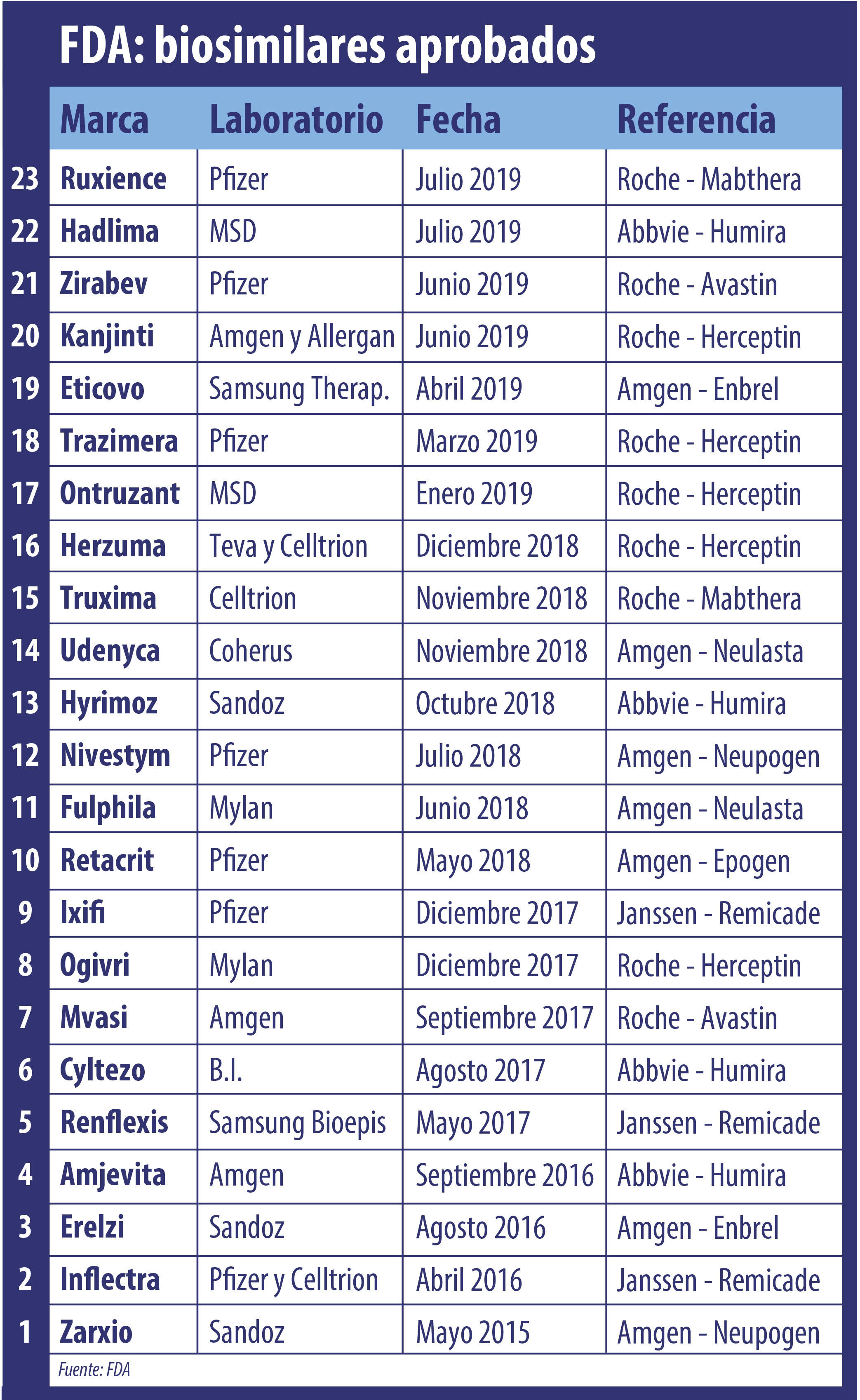 En el mes de julio la FDA le dio el visto bueno a dos nuevos biosimilares y alcanzó así un total de 23 productos de este tipo aprobados.