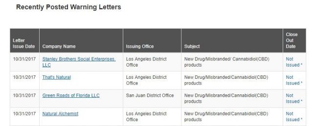 La FDA le sacó tarjeta roja a cuatro compañías que venden productos con cannabidiol.