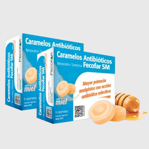 El nacional Fecofar salió al ruedo con una nueva presentación de sus caramelos antibióticos, que ahora se comercializan con sabor a miel. A su vez incluyó un código QR en el envase, para acceder al prospecto en audio.