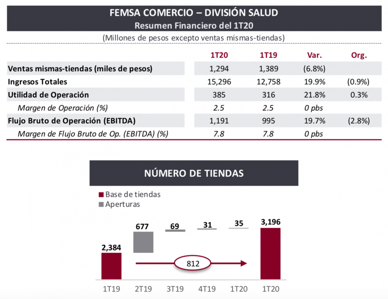 En medio de la crisis del coronavirus, la división de Salud de la mexicana FEMSA trepó un 19.9% en ventas durante este primer trimestre del año. Sin embargo, el impacto cambiario implicó una caída del -0.9% en términos orgánicos, en el negocio que sumó 35 nuevas tiendas en esta primera etapa del 2020.