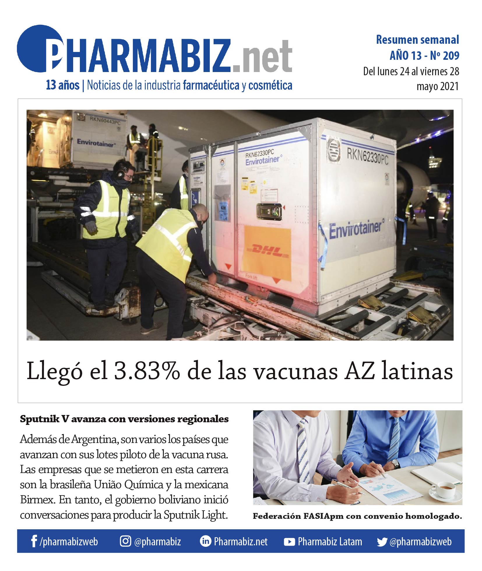 Las vacunas anti COVID-19 se mantienen firmes en la agenda político-sanitaria de la semana. El lunes feriado arrancó con la llegada del primer lote de la versión latina de AZ, y Pharmabiz realizó un informe en el que pasó revista al status de todas las entregas. Además hubo novedades relativas al amplio espectro de convenios paritarios y que implican a distintas ramas de la actividad.