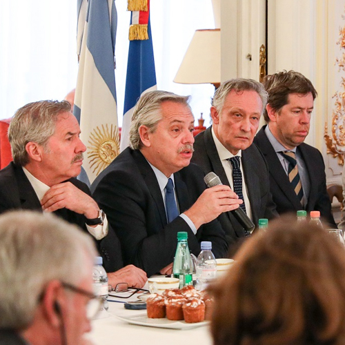 Durante la jornada, el primer mandatario argentino se reunió en la Embajada argentina en París con representantes de las compañías francesas que operan en el país. Allí 39 ejecutivos pusieron en agenda diferentes temas, entre los que resaltaron el escenario económico local y las restricciones cambiarias impuestas por Fernández a pocos días de asumir su mandato.