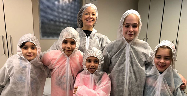 Los niños se divirtieron recorriendo las oficinas y la planta y los más grandes hicieron experimentos. ¿El dato de color? Se plantaron stickers con «virus» por toda la unidad de manufactura y los chicos tenían que encontrarlos, a la vez que introducirlos en una cajita de Ferring.
