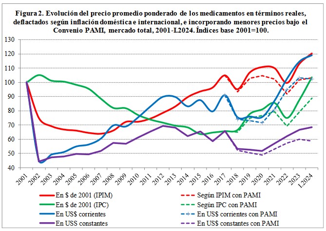 El resultado es que entre 2001 y I.2024 el precio promedio ponderado de los medicamentos:
