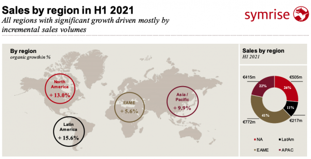La multi germana explicó que el crecimiento orgánico de las ventas fue más fuerte al anotar una mejora del 9,7%. Al mismo tiempo detalló que la adquisición del negocio de fragancias y aromas químicos de las norteamericana Sensient en abril pasado, aportó € 14,4 millones. Ver Presentación.