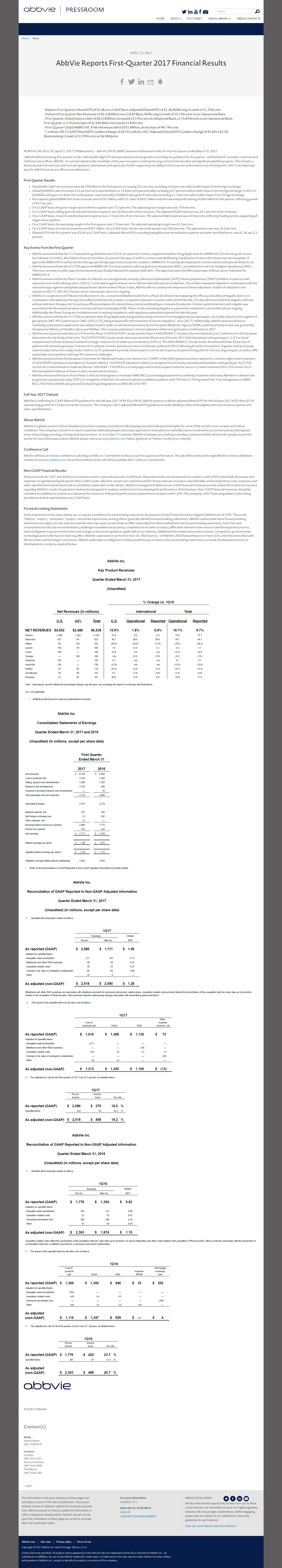 En paralelo, la norteamericana Abbvie facturó u$s 6.5 mil millones, lo que se reflejó en un aumento del 10.1% en ventas, en comparación con el primer trimestre del año anterior. Ver press release
