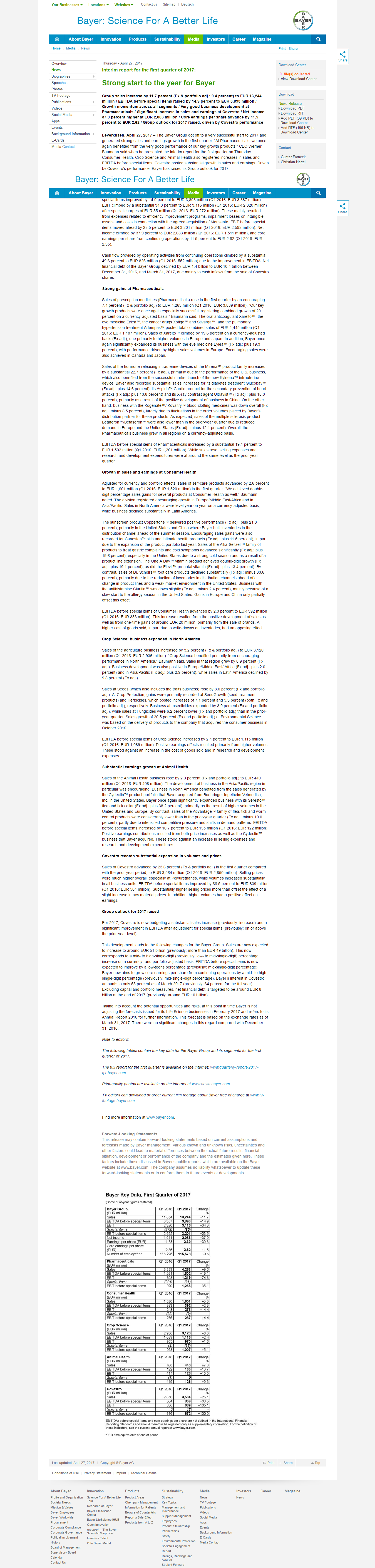 Su negocio de farma le significó un alza del 9.6% e ingresos por €4.2 mil millones. Los caballitos de batalla de Bayer fueron Xarelto, para la prevención de la tromboembolia venosa; los oncológicos Xofigo y Stivarga; y Adempas, indicado para el tratamiento de la hipertensión pulmonar.