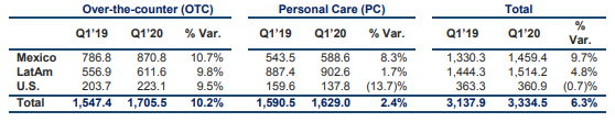 Los mexicanos de Genomma mostraron un alza del 6.3% en el primer trimestre del 2020, en medio de la pandemia por el coronavirus. Con resultados dispares según la región, el segmento de medicamentos OTC -que le representa el 51% de las ventas totales- trepó un 10.2% por un incremento en la demanda, por caso, de sus productos a base de paracetamol.