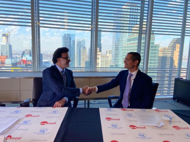 La alianza 50/50 fue rubricada en Nueva York por Rodrigo Herrera Aspra, presidente del Consejo de Administración del laboratorio mexicano y Nadav Kidron, CEO de Oramed y presidente de Oravax. Ver LinkedIn.
