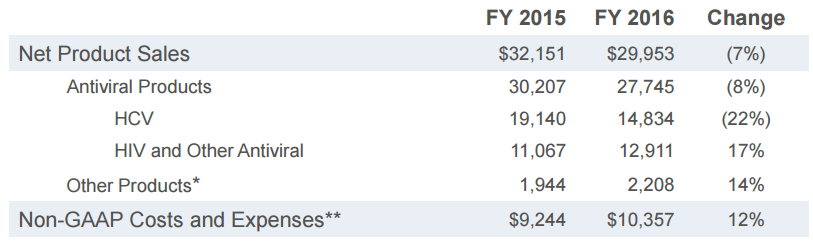 Gilead publicó sus resultados 2016. Aunque reportó una caída de sus ventas del -7%, la estrella fue su producto Harvoni, para la hepatitis.