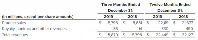 La biotecnológica cerró el 2019 con ingresos totales por u$s 22.400 millones, lo que significó un 1% más que en el 2018, cuando facturó u$s 22.100 millones.