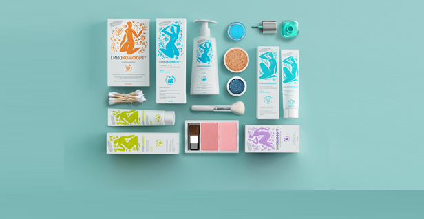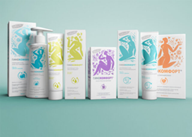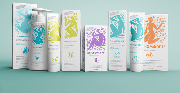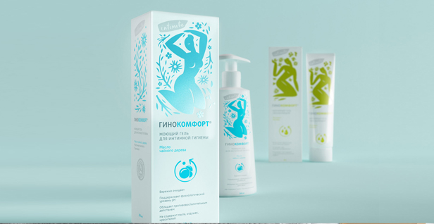 La agencia creativa rusa Otvetdesign, rediseñó la línea de higiene femenina Ginocomfort, de la compañía farmacéutica rusa Beptekc (ver compañía).