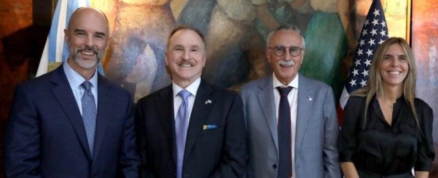 El ministro de Salud de la Nación, Mario Lugones, junto al embajador de los Estados Unidos en la Argentina, Peter Lamelas, recibió a representantes de Pfizer, encabezados por Agustina Ruiz Villamil, con motivo del lanzamiento de un Centro Global de Datos Clínicos y Ciencias de la Información (CDIS) en el país.