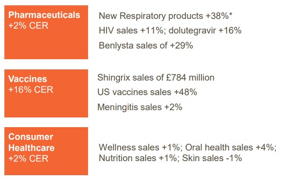 La multi consignó que el crecimiento de su negocio de Vacunas estuvo impulsado por un fuerte desempeño de sus vacuna contra el herpes Shingrix, que trepó más de un 100%; y Fluarix/FluLaval, para influenza, que se elevó un 10% en ventas.