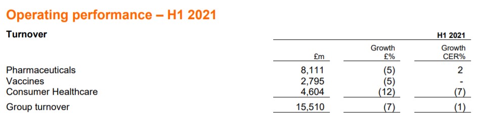 Los negocios de Farma y de Vacunas no fueron lo suficientemente fuertes para salvar el semestre de la británica GSK. La multi consignó que cayó un -1% en moneda constante con ventas por £15.510 millones, arrastrada por su división de Consumer Healthcare. Ver Press Release