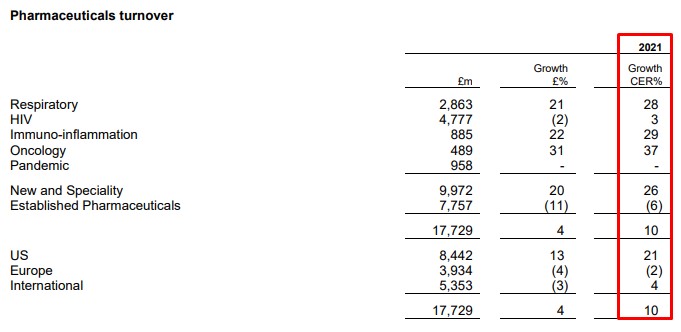 La división de Farma fue la que más contribuyó a esta performance. Le devolvió £ 17.729 millones, lo que se tradujo en un incremento del 10% frente al año anterior. Dentro de este negocio se destacó el crecimiento de su portafolio de Oncología, que escaló un 37% apuntalado por Zejula, para cáncer de ovario; seguido por el de Inmuno-Inflamación que ascendió un 29%. En tanto, en el segundo año de pandemia por el COVID-19, la unidad de Respiratoria marcó un alza del 28%.
