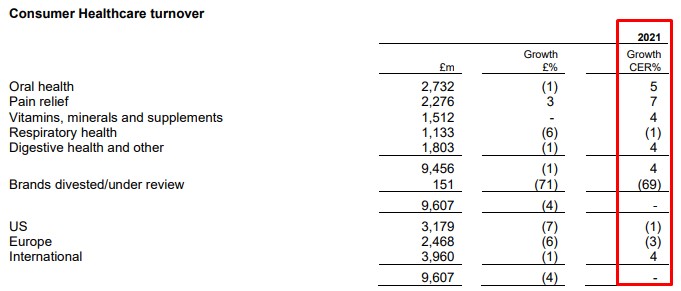 Por último, el portafolio de Consumer Healthcare se mantuvo planchado, con ventas por un total de £ 9.607 millones durante el 2021. Aunque al excluir las marcas a las que la multi le quitó inversión o tiene en revisión, la unidad incrementó su facturación en un 4% en moneda constante. La corporación confirmó en su reporte financiero que este 2022 será el año en el que la división se escindirá como una firma independiente.