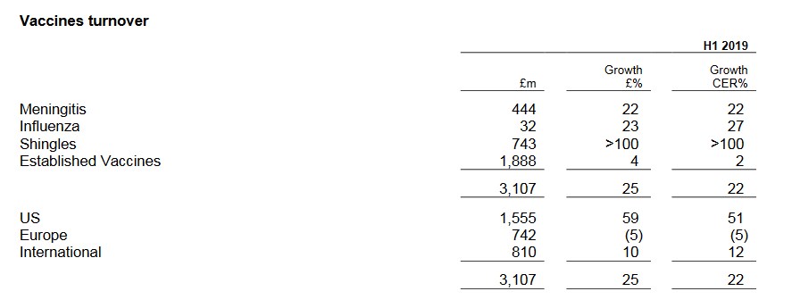 La británica GSK dijo que creció un 5% en ventas durante los primeros seis meses del 2019. Su negocio de Vacunas fue el caballito de batalla. El mismo escaló un 22% con Shingrix a la cabeza.